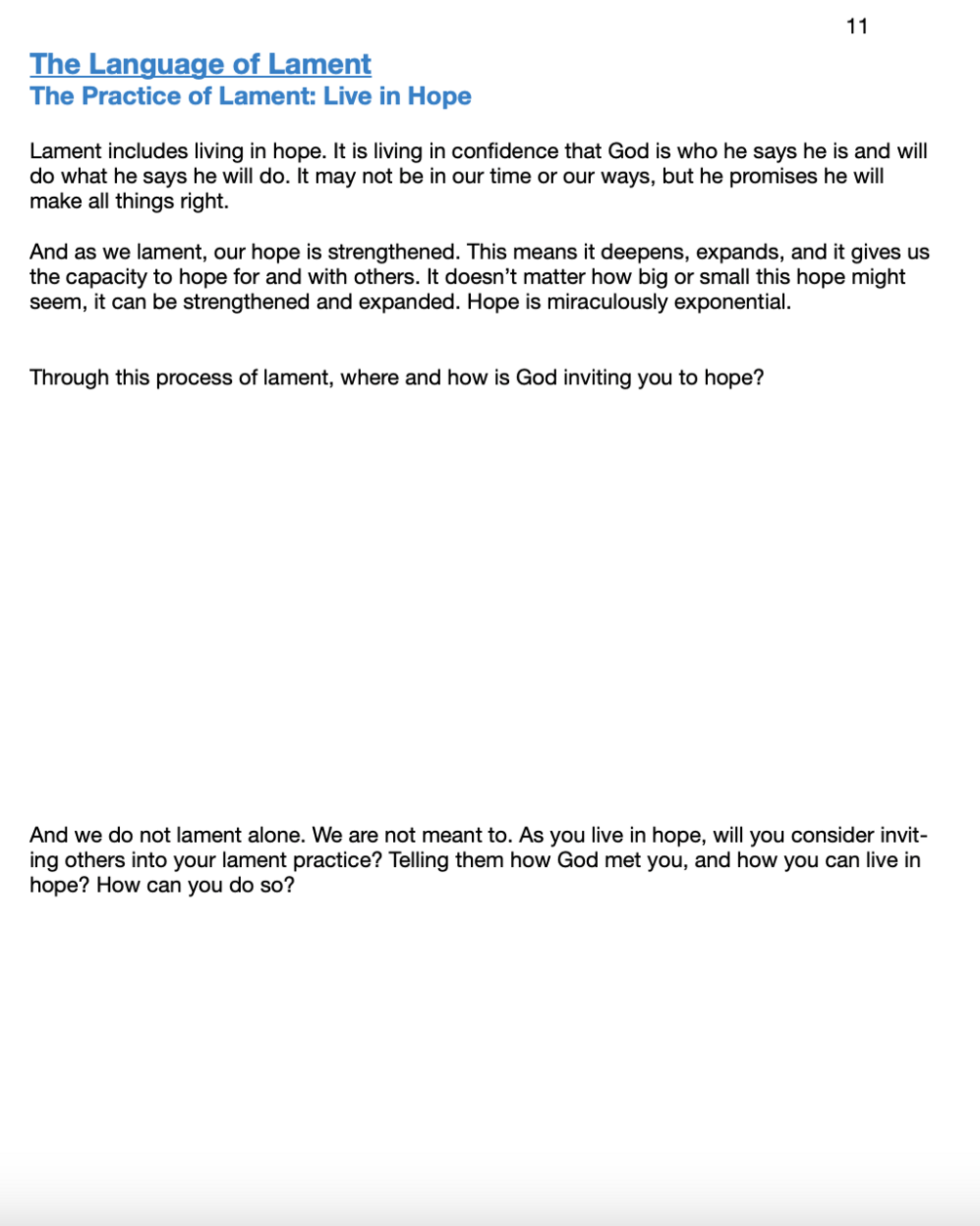 This guide walks through the practice of Lament in these spaces: