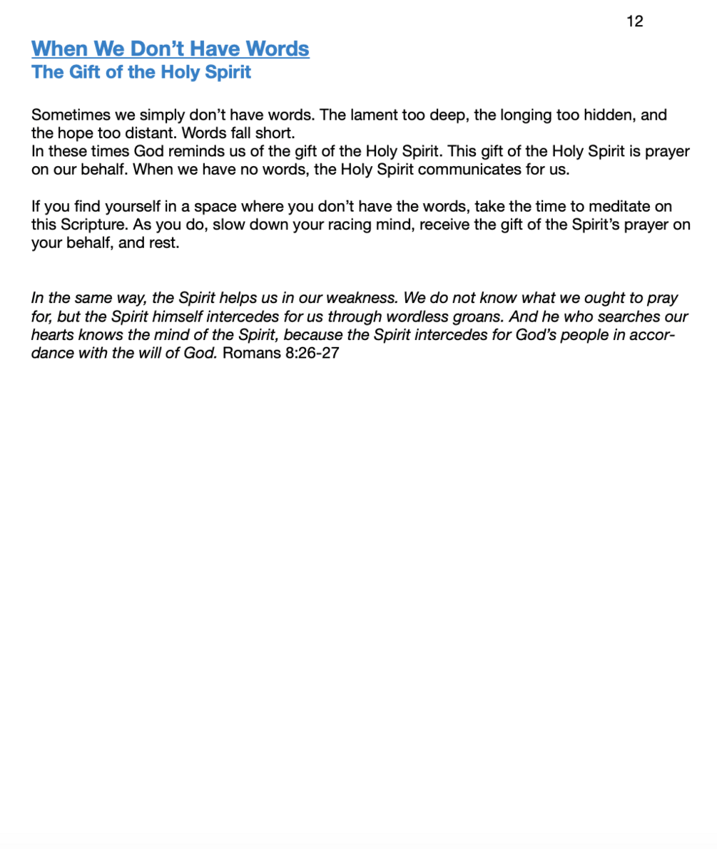 Our hope and prayer is that this time draws you nearer to our God and strengthens you in heart, mind, body, and soul.